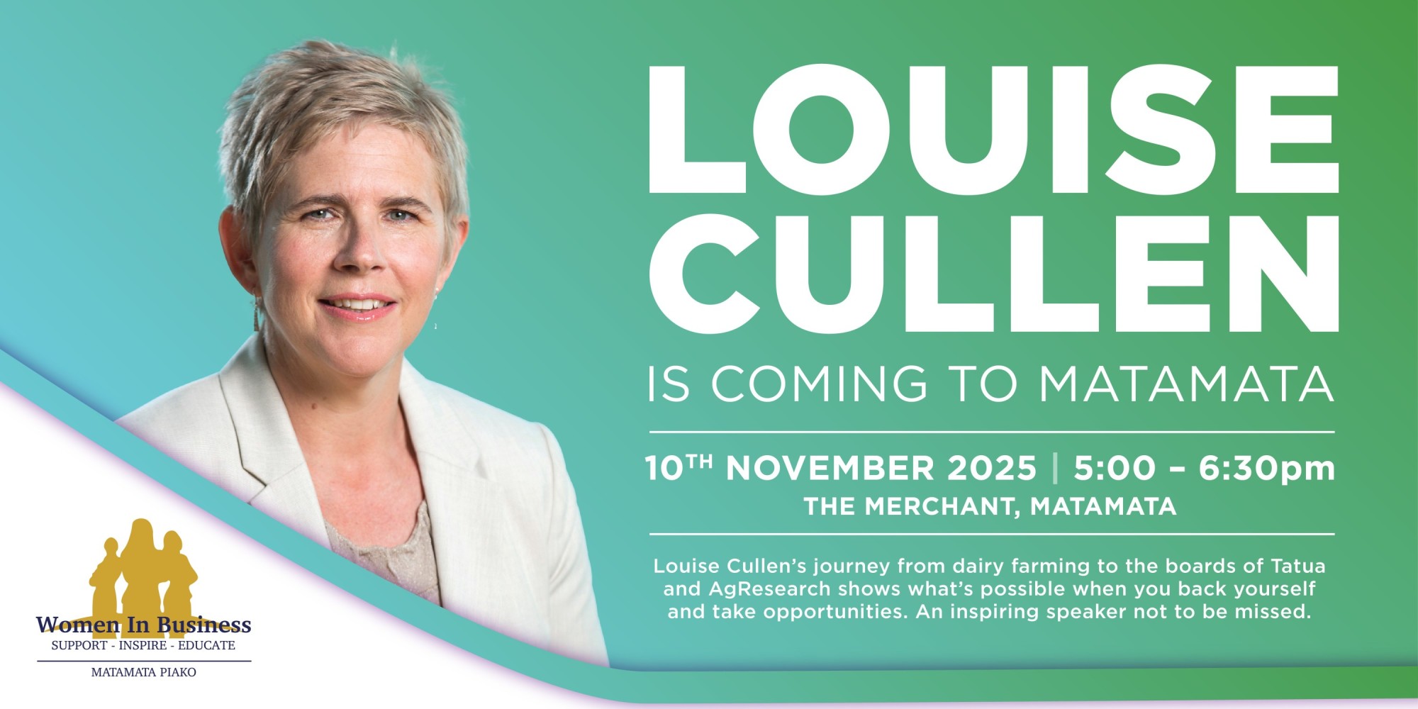 We are excited to share that we have Dr. Louise Cullen coming to Matamata. Our November 10 event is one that you definitely don't want to miss!